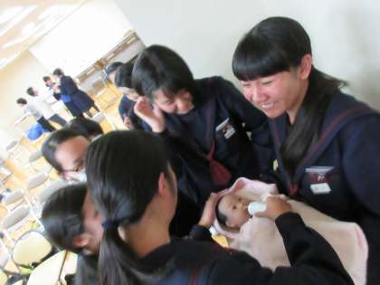 はじめは、抱っこがぎこちない生徒もいましたが、上手にできるようになりました。