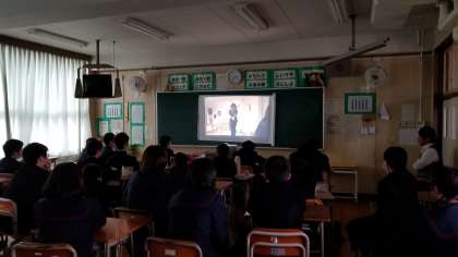 3年1・2組が聖バルナバ病院で実習している間、3・4組は教室でビデオを見て、命の大切さ尊さを学びました。