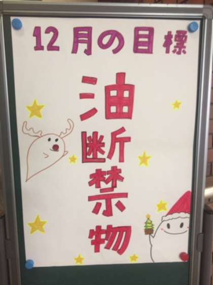 玄関ピロティに12月の学校目標が掲示されています。「油断禁物」です。今年もあとわずかになりました。2学期の終わり、2017年の終わりに向け、気を引き締めていきましょう。油断禁物です。