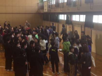 本日6時間目、真田山小学校6年生が本校を訪問し、中学1年生に英語でインタビューをしました。