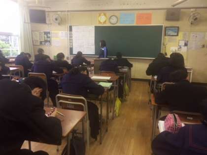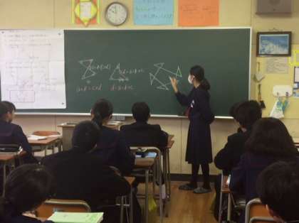 12月8日2時間目、2年数学において相互参観授業を行いました。図形の調べ方の単元です。本時では、星形五角形の角の和を学習しました。まずは既習事項をプリントで確認しました。
