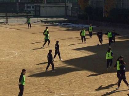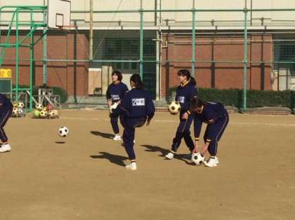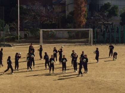 2年体育の授業の様子です。男子と入れ替わり、サッカーの授業になりました。なでしこジャパンのようにはいきませんが、寒い中、頑張っています。