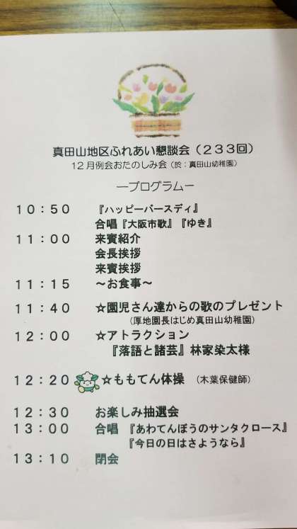 真田山地区ふれあい懇談会 12月例会お楽しみ会に参加させていただきました。