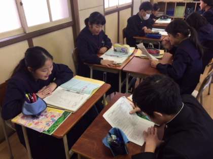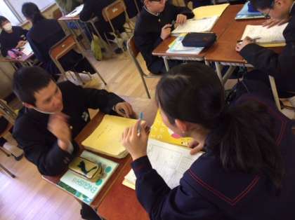 12月15日4時間目、1年英語科において相互参観授業を行いました。助動詞canの意味、用法を理解し、自分のできること・できないことについて表現できるようにします。
