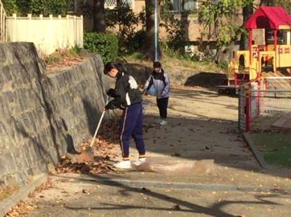 清水谷公園の様子です。担当は2年3組です。ここは上下に別れて清掃しました。