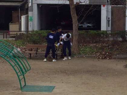 小橋公園の様子です。担当は2年4組です。ここも上下に別れての清掃になりました。