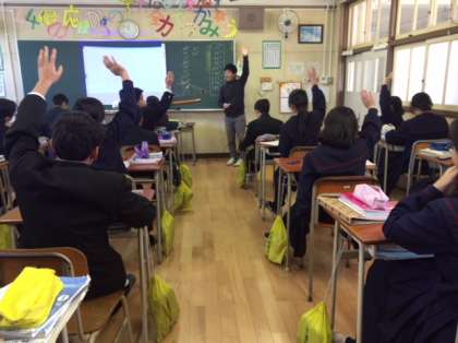 4時間目、1年数学科において相互参観授業を行いました。平面図形の単元です。「いろいろな大きさの角を作図しよう」ということで様々な角を作図しました。