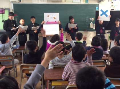 紙芝居が終了したあとは、歯と口の健康に関するクイズを行いました。みんな元気よく答えていました。歯を大切にしましょうね。中学生のみなさんご苦労様でした。