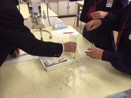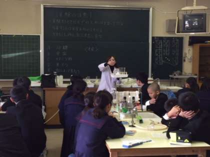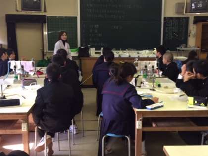 本日4時間目、1年理科において相互参観授業を行いました。理科室での実験です。まずは実験に入る前に何点かの諸注意を行いました。