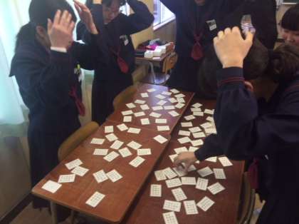 1年生は国語の授業を活用して、百人一首の練習をしています。1月には、百人一首大会がありますのでみなさん力が入っています。「ちはやぶる・・・」の反応が速すぎる!