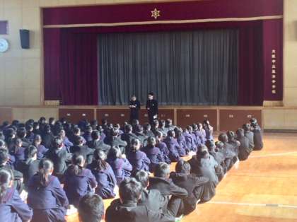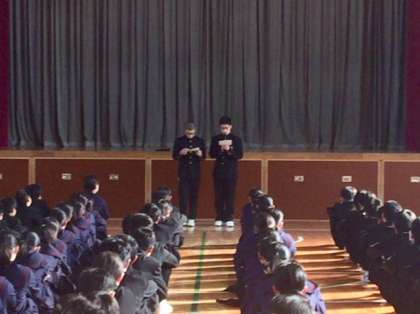 3時間目は2年生の学年集会です。まずは最初に保健委員会の生徒代表から健康面や安全面についての話がありました。体調を崩さないように気をつけていきましょう。