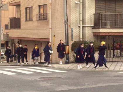 1月9日、今日から3学期がスタートします。朝の登校の様子です。寒い朝ですが、みんな元気に登校してきます。