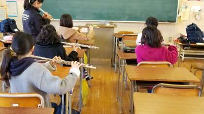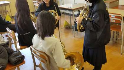 中学生の指導で、楽器によっては音が出ることで喜んだりして、楽しく嬉しそうです。