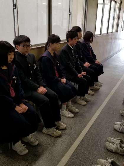 3年生校長面接二日目が2組からはじまりました。校長室に入る前は少しリラックスしていますが、部屋に入ると、少し緊張しています。