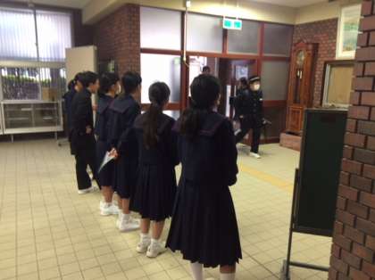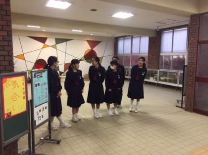 先週末は1年生の役員一人で頑張っていましたが、今日から5人の2年生役員も復帰し、6人揃っての朝のあいさつ運動を再開しました。