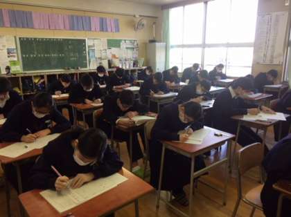 1月24日、3年学年末テストが始まりました。校内で受けるテストはこれが最後になります。集中して頑張りましょう。