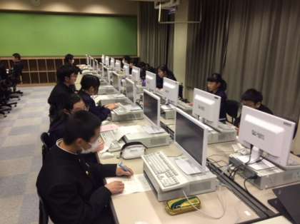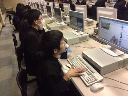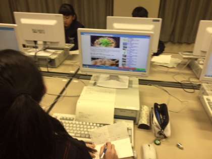 アメリカ・インドネシア・マラウイ・ミャンマー・アラブ首長国連邦・マレーシア・コロンビア・タイの8ヵ国です。みんなで手分けしていっぱい調べましょう。写真はパソコン室の様子です。