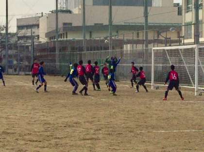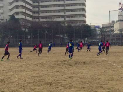 2月3日、浪速公園グランドにおいてサッカー8ブロック春季大会予選リーグが行われました。今日の対戦相手は難波中です。