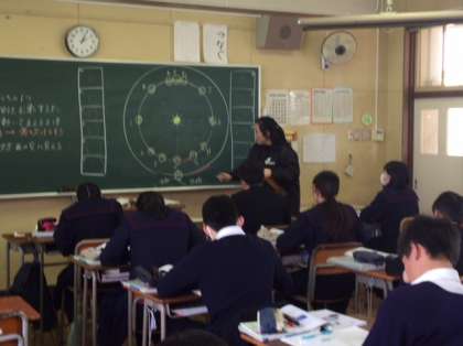 本日5時間目、3年理科において相互参観授業を行いました。単元は「宇宙の中の地球」です。この時間は金星の動きと満ち欠けについて学習しました。地球から見た金星は時期によって形・大きさ・方角がなぜ違うのかなどを学びました。