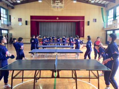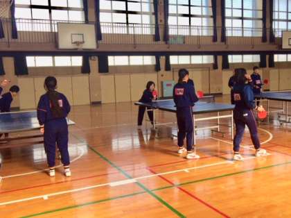 3年体育の授業の様子です。女子は卓球を行っています。初めて卓球をする生徒もいるような感じですね。しかし、すぐに慣れてきました。楽しみましょう。