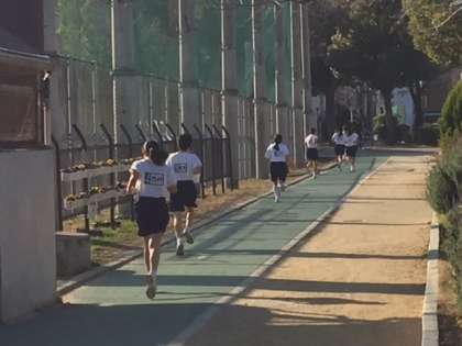 次々とゴールしてきます。学校で走っている時より速いタイムが出ているのではないでしょうか。男子のトップは5分5秒、女子は5分44秒でした。皆さん良く頑張りました。来年は自己記録を更新しましょう。