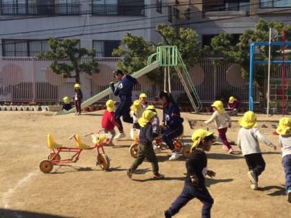 本日から始まった職場体験学習の様子を随時紹介していきます。味原幼稚園と味原保育所の様子です。園庭などで楽しそうに園児たちと遊んでいますね。