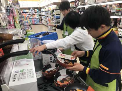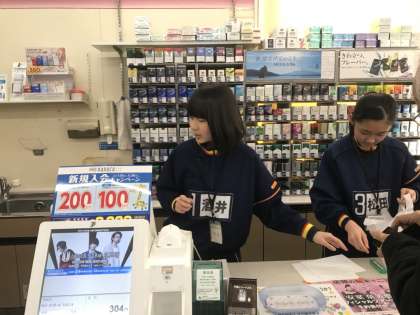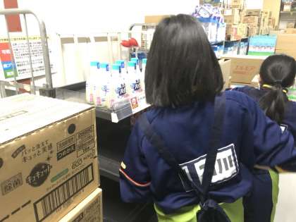 ライフ清水谷店とセブンイレブン大阪上本町2丁目店の様子です。商品を棚に並べたりレジの手伝いをしたりしています。たくさんの種類の商品があるのでたいへんですね。
