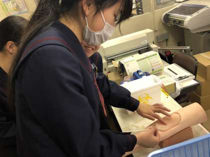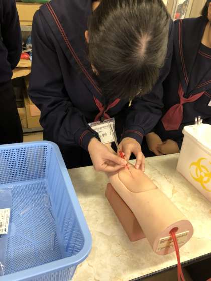 大阪トヨタ自動車松屋町店と大阪府赤十字血液センターの様子です。まるで自動車整備のお兄さんですね。気をつけて仕事してください。血液センターでは採血の練習をしています。なんか怖いですね。うまくできるかな?