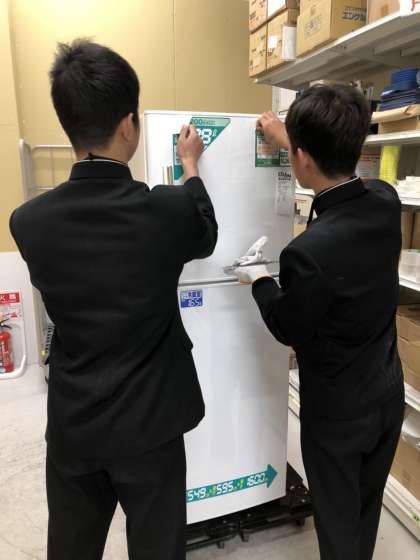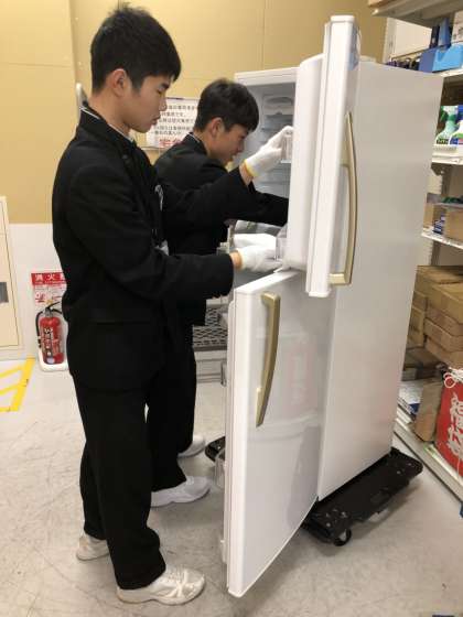 エディオンもりのみやキューズモールの様子です。配送する展示用冷蔵庫の清掃作業をしていました。