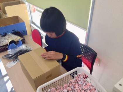 就労継続支援ネクストドアの様子です。クリップを箱に詰めていく作業をしていました。集中してやっています。
