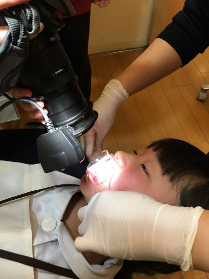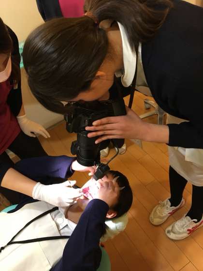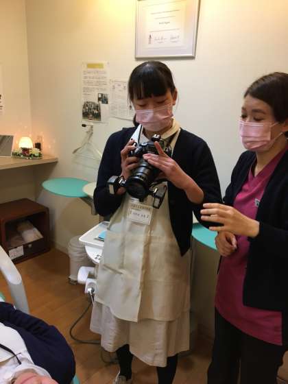 カガミ歯科医院の様子です。歯の状態をカメラに収めているのでしょうか。本格的に色々なことを体験させていただいていますね。