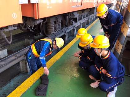 JR西日本森ノ宮車両区の様子です。車掌体験をしたり、ブレーキ取り替え作業の見学をしたりしました。