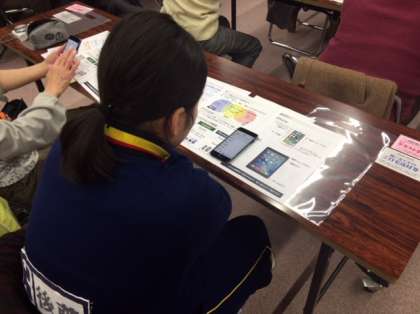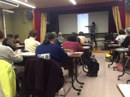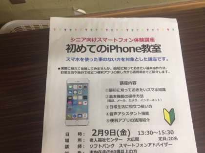 天王寺区社会福祉協議会の様子です。協議会が開催する「初めてのi phone教室」に参加していました。たくさんのお年寄りがスマホを片手に講習を受けていました。