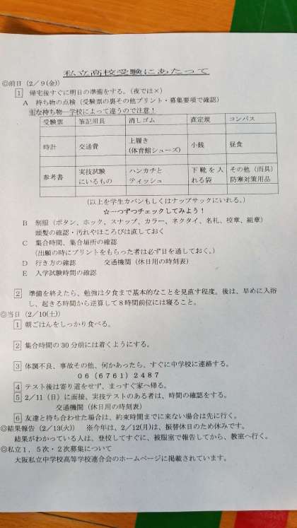 本日6時間目に明日から行われる私学入試の事前指導がありました。