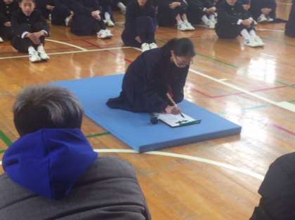 最後に書道の紹介と実演をして全体会を終了しました。