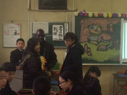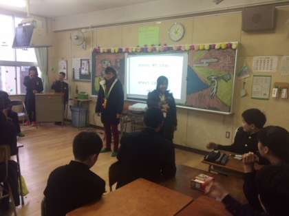 2組の様子です。どのクラスも黒板アート的にすごい絵が描けていますね。