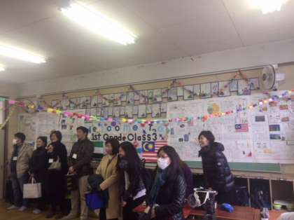 3組の様子です。保護者の方々も交流を楽しそうに見学しています。