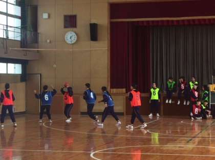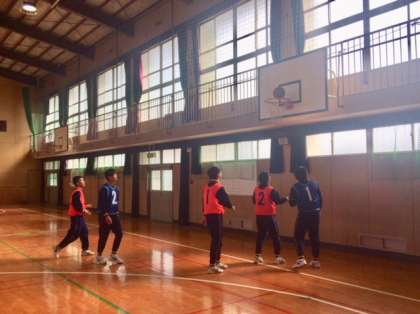 3年の体育の授業の様子です。男女とも体育館でバスケットボールの試合を行っています。早めのチーム交代なのでテンポがいい試合になっています。楽しそうです。バスケットボール部以外の生徒も上手ですね。