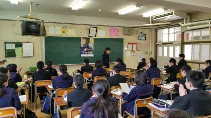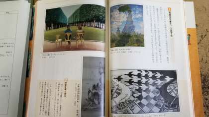 本日3時間目、1年において相互参観授業を行いました。絵画を見て鑑賞文を書こうという単元で、 教科書に載っている、モネ作「日傘の女性 」、エッシャー作「昼と夜」、ホックニー作「スルス公園」等を見て鑑賞文を発表しました。なかなか人それぞれで、すばらしい発表ばかりでした。