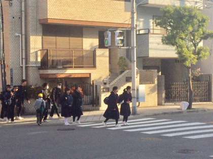 2月20日、寒さも少し和らぎ、爽やかな朝を迎えました。空は雲ひとつない青空が広がっています。みんな元気よく登校しています。
