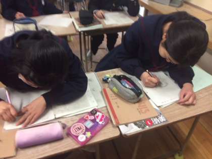 2月21日2時間目、1年美術科において相互参観授業を行いました。導入は恒例の人物クロッキーです。うまく描けたかな?今日の単元は平面デザインです。インスタント商品「オリジナルカップ◯◯◯」を考えよう。ということで独創的なカップ製品を創造し、そのカップのふたのデザインを考えます。さぁて、どんなものが出来るかな?