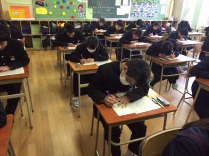 1・2年生の学年末テストが始まりました。今年度最後のテストになります。最後まで頑張りましょう。