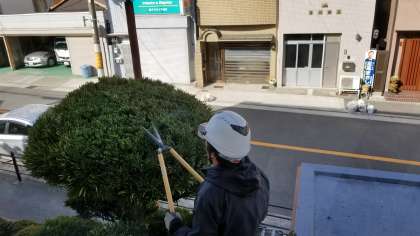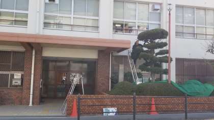 昨日に引き続き、剪定作業が続いています。今日は、正門まわりの剪定です。卒業式にむけて、きれいにしてくださり、ありがとうございます。