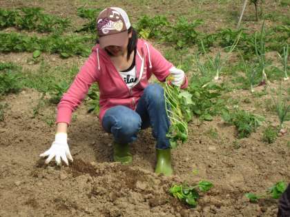 農業体験では畑に出て、いちごを摘んだり、みかんを採りました。