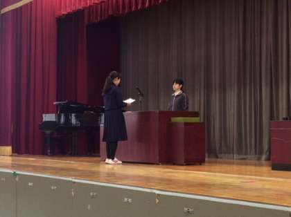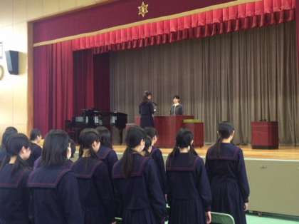 起立・礼に始まり、卒業証書授与など一連の流れを練習しました。最初の練習でしたが、なかなかスムーズに進んだと思います。繰り返し練習して素晴らしい式にしましょう。