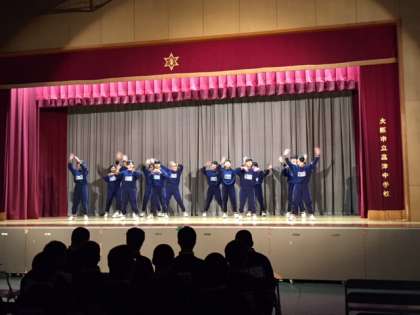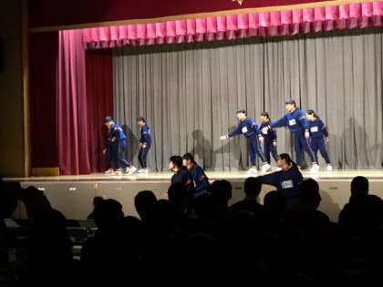 4時間目は、2年3・4組です。このクラスのトップバッターは4組女子です。途中、半数が舞台から飛び降り、上下二部構成になりました。