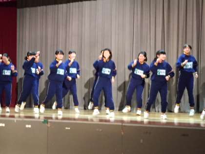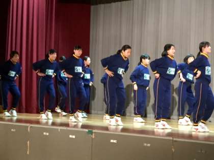 次は2組の女子です。なかなか独創的な動きも取り入れて頑張ってるいますね〜。