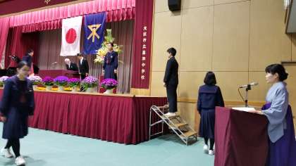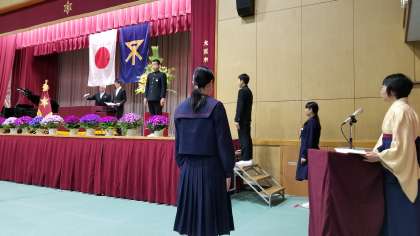 国歌斉唱、校歌斉唱に引き続き、卒業証書授与。