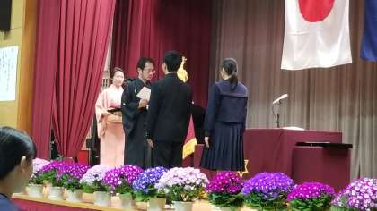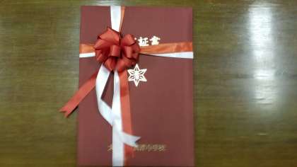 PTAより卒業生に記念品がおくられました。卒業証書ファイルです。