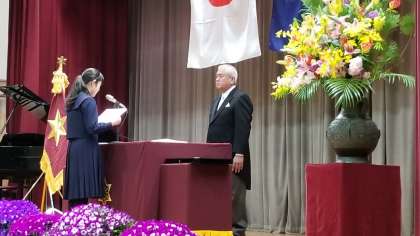卒業生答辞 「3年間ともに過ごしてきた仲間に心から感謝しています。・・・いろんな感動をわかち合って、何にも代えがたい輝かしい時間を送ることができたのは、紛れもなく皆がいたからです。ありがとう という言葉がどれだけあっても足りません・・・この最高の仲間とも今日でおわかれです。この高津中学校で3年間過ごせたことを本当に誇りに思います」